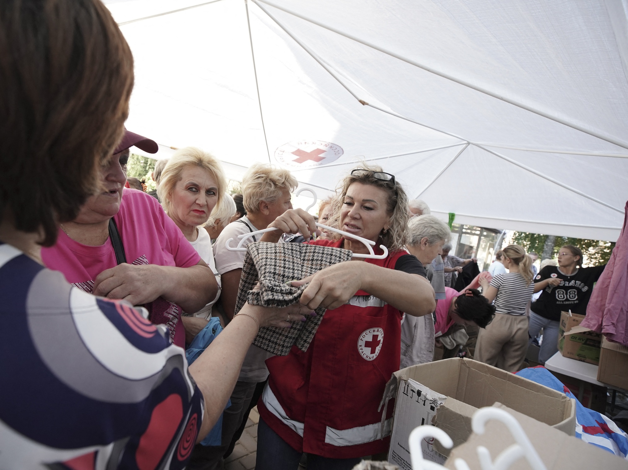 因乌克兰攻势而流离失所的俄罗斯平民正在领取援助。