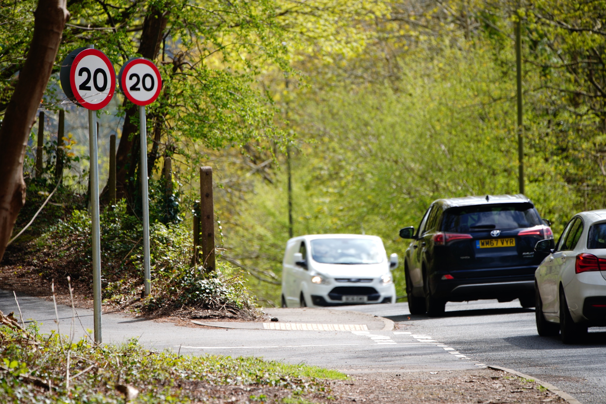 威尔士布里纳韦尔的20英里每小时限速标志。