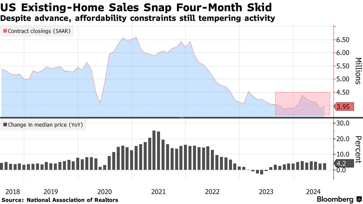 美国现有住宅销售五个月来首次增长 - 彭博社