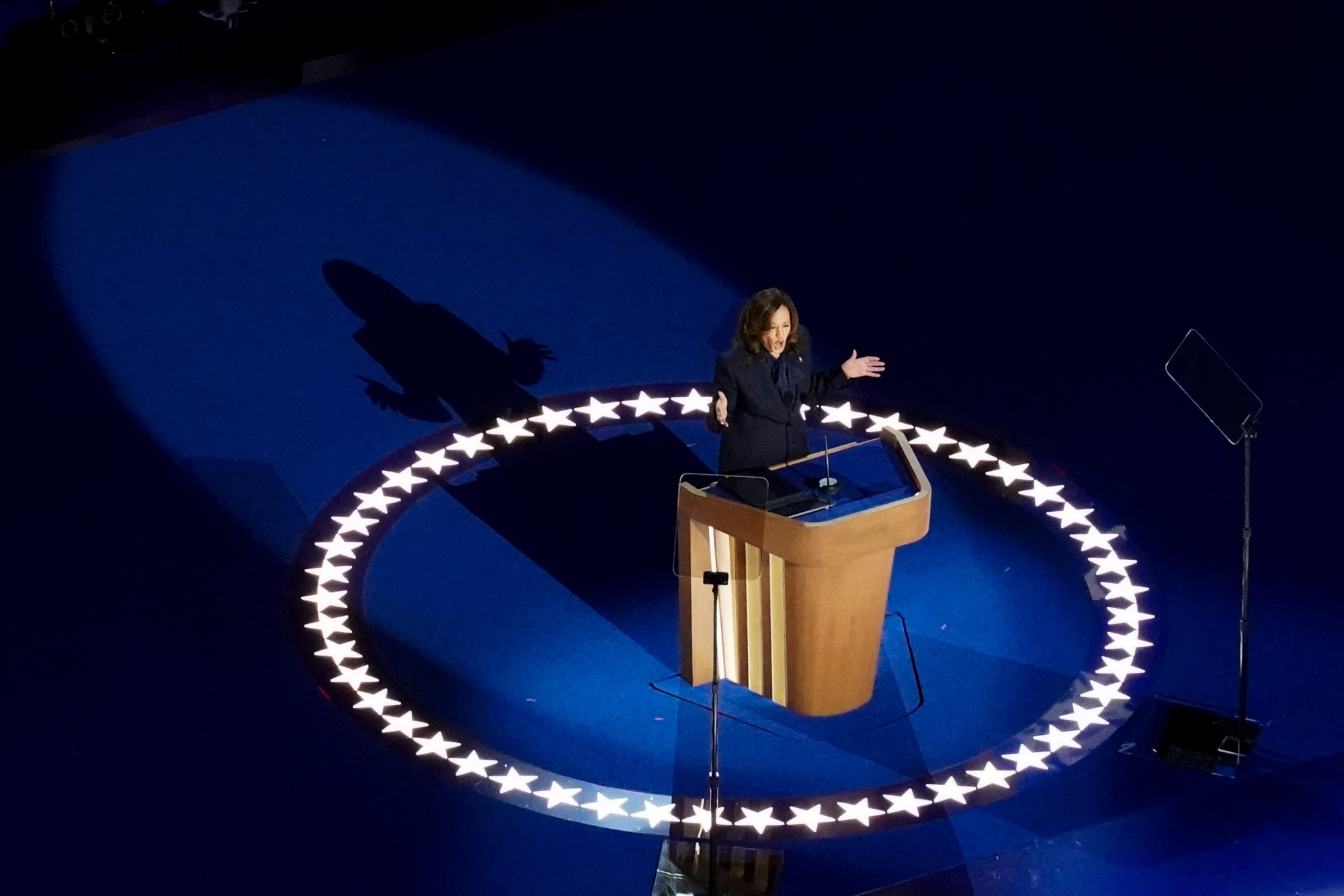 美国副总统卡马拉·哈里斯在8月22日于芝加哥的联合中心举行的民主党全国大会上发表讲话。