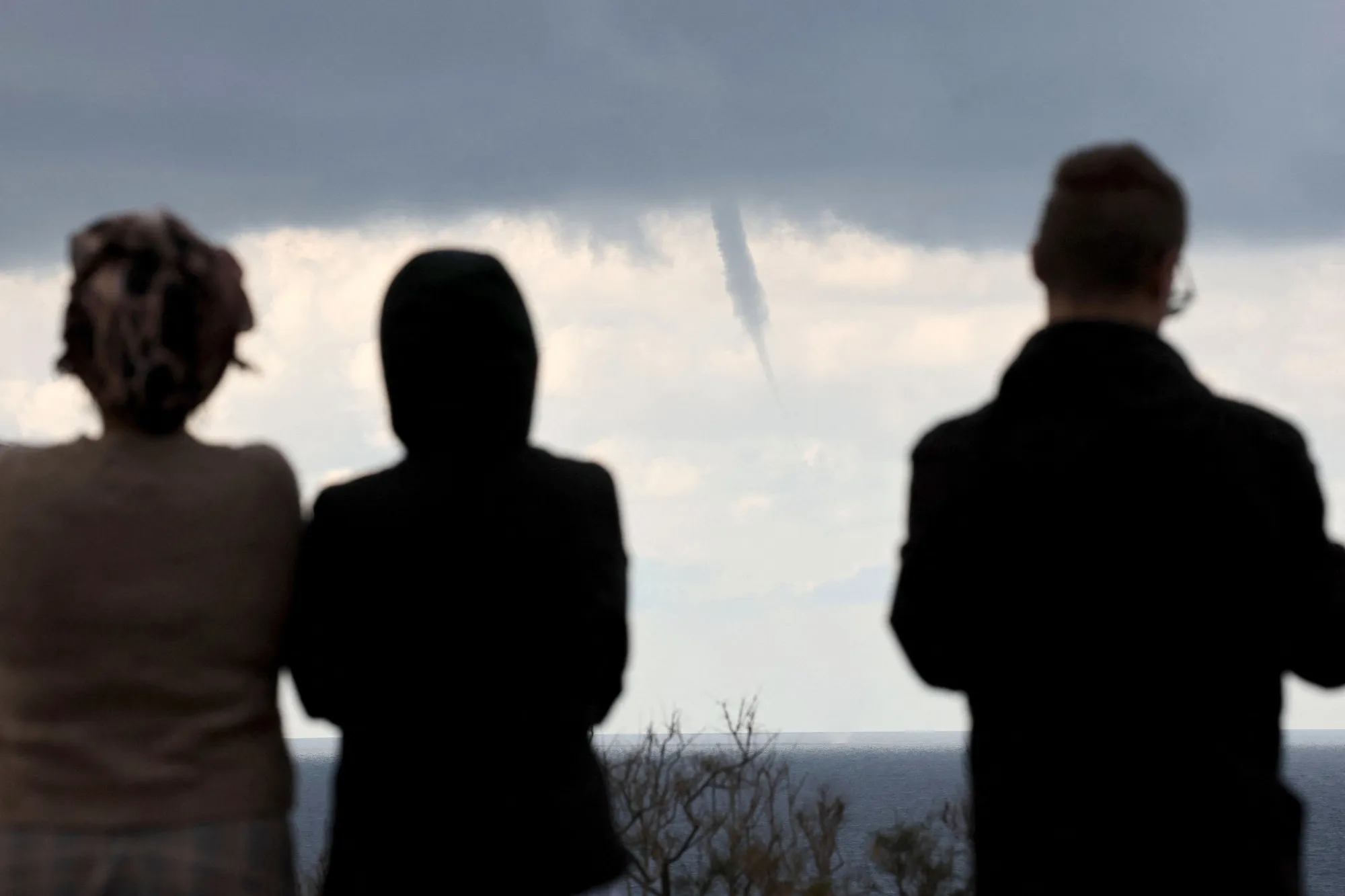 人们在1月7日观看水龙卷在地中海上形成。摄影师:杰克·格兹/法新社/盖蒂图片社**中国提前六年实现绿色目标。**该国在清洁能源领域的全球领先增长已通过另一个基准,其风能和太阳能容量超过了习近平主席为2030年设定的目标。