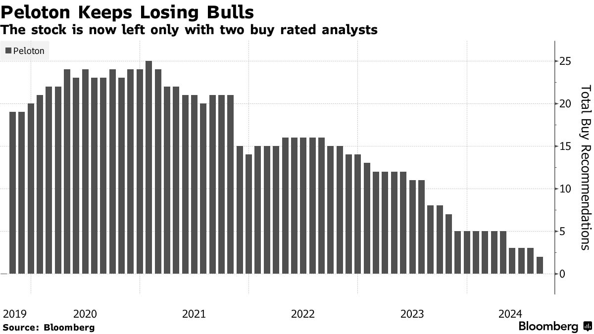 安穆斯是华尔街上对 Peloton 最老的看涨者,即使在该公司股票自他首次评级以来下跌近 80% 的情况下,他仍坚持看涨。Peloton 在疫情初期是华尔街的宠儿,因为消费者在封锁期间争相购买其固定自行车和健身课程。但随着人们重返健身房,该公司的收入下降,导致其股票暴跌。