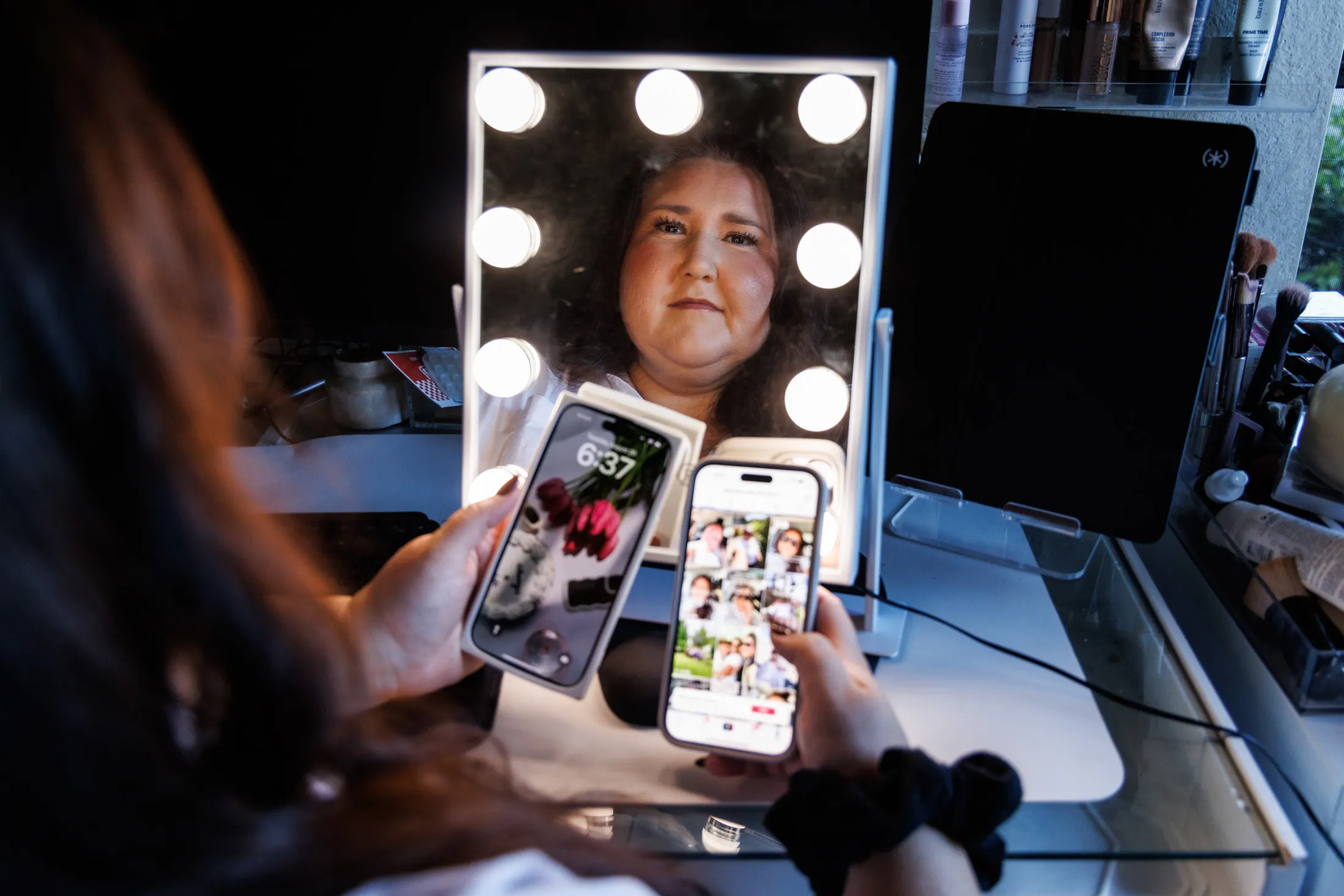 Alejandra Hernandez在她母亲位于加利福尼亚州都柏林的家中制作TikTok视频的房间里。摄影师:Rachel Bujalski为《彭博商业周刊》拍摄对于一些员工来说,发布帖子是一种在成千上万被裁员的员工中脱颖而出并尽快获得下一份薪水的策略。当Alejandra Hernandez在2022年11月收到Meta裁员通知时,她对着丈夫哭了30秒。然后她打开摄像头并开始录制。Hernandez住在旧金山湾区,习惯于在社交媒体上分享自己的生活,并在TikTok上积累了大约15,000的粉丝。分享对她来说是自然而然的。10分钟内,她就发布了她的视频。她想利用她知道该网站算法会带来的关注——她需要一份工作,为此她希望尽可能广泛地建立人脉。她的第二个帖子是关于被裁员和失业的“生活中的一天”视频,获得了近一百万的观看次数。
