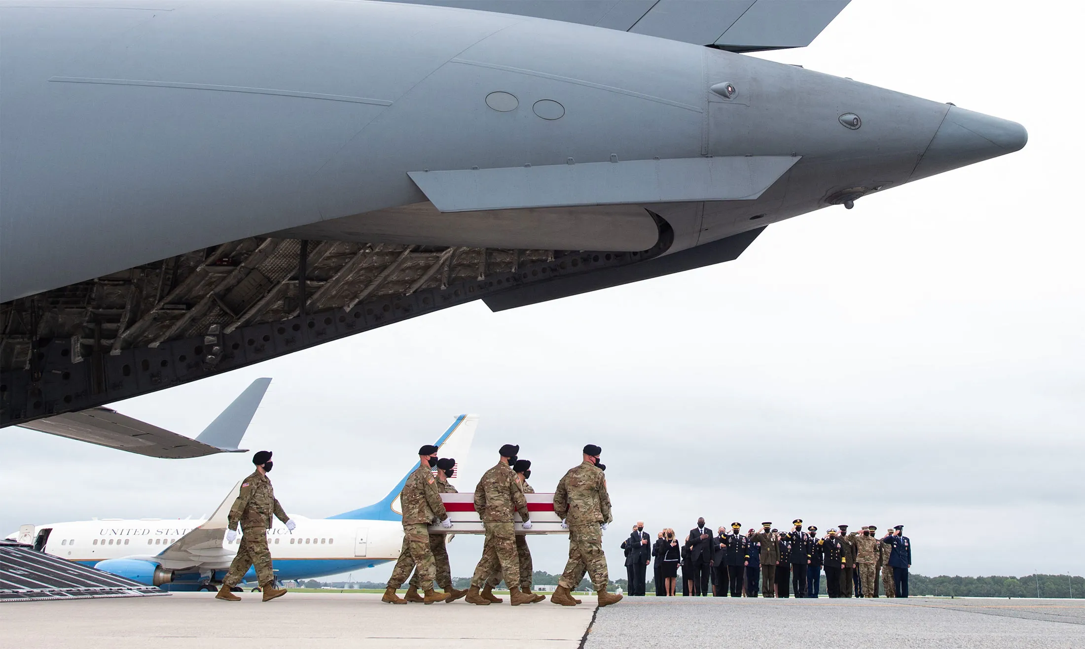 总统乔·拜登和其他官员于2021年8月29日在特拉华州的多佛空军基地参加了已故军人遗骸的庄严转移。摄影师:索尔·洛布/法新社/盖蒂图片社特朗普与塔利班达成了一项2020年2月的协议,但没有与阿富汗政府达成协议,该协议设定了美国从阿富汗撤军的初步时间表,拜登对此进行了修改。特朗普和共和党指责拜登——以及现在的副总统卡马拉·哈里斯,民主党提名的接任者——对撤军的执行方式负责。