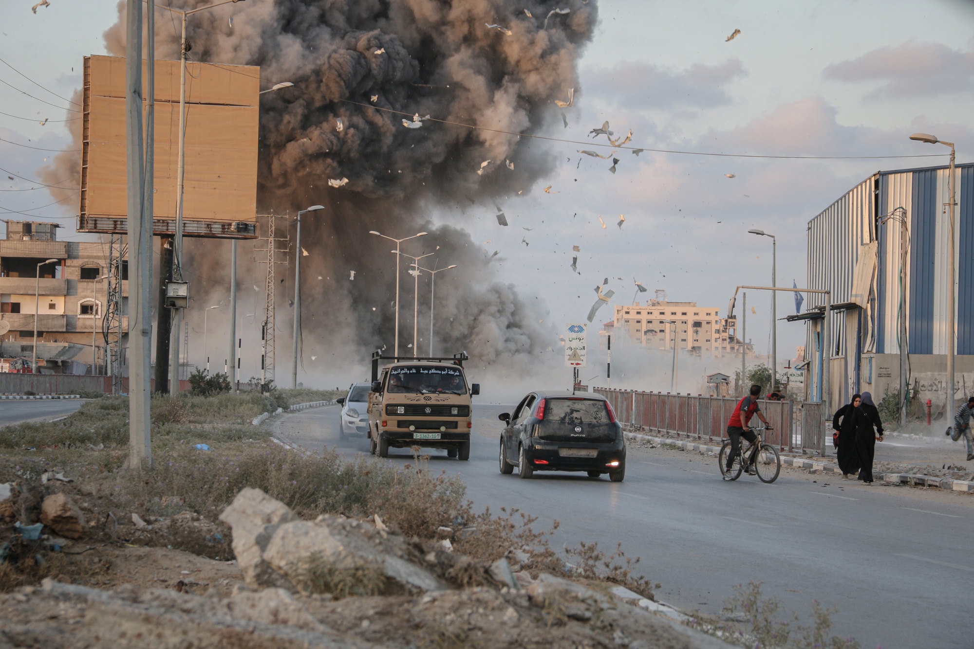 8月22日,以色列在加沙中心的萨拉赫·阿尔-丁路上的一个工业设施进行突袭时发生爆炸。摄影师:阿赫迈德·萨利姆/彭博社哈马斯表示,一个代表团将于周六晚上前往开罗,以获取关于旨在实现加沙停火的谈判的最新消息。