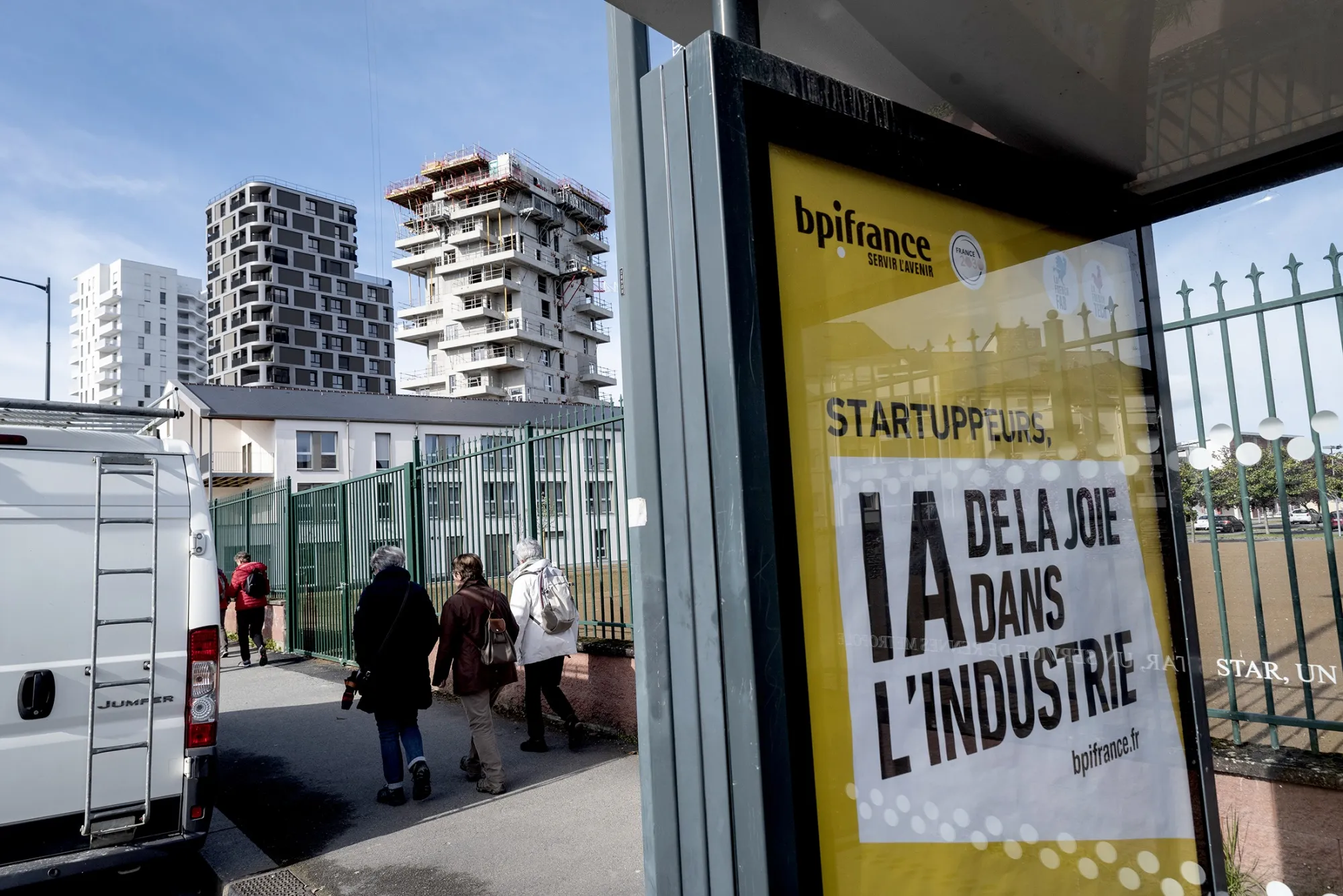在雷恩的公交站,Bpifrance关于人工智能和工业的广告。摄影师:Kermalo/REA/ReduxBpifrance的投资也是其他投资者的认可印章,Zephalto的创始人文森特·法雷·达斯蒂耶斯表示,该公司旨在以气球将乘客送入平流层,每人€170,000。