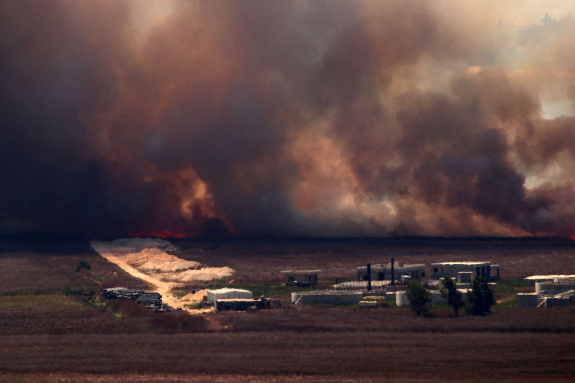 火灾席卷了南黎巴嫩的马尔贾尤恩平原,在8月16日遭到以色列炮击后。
