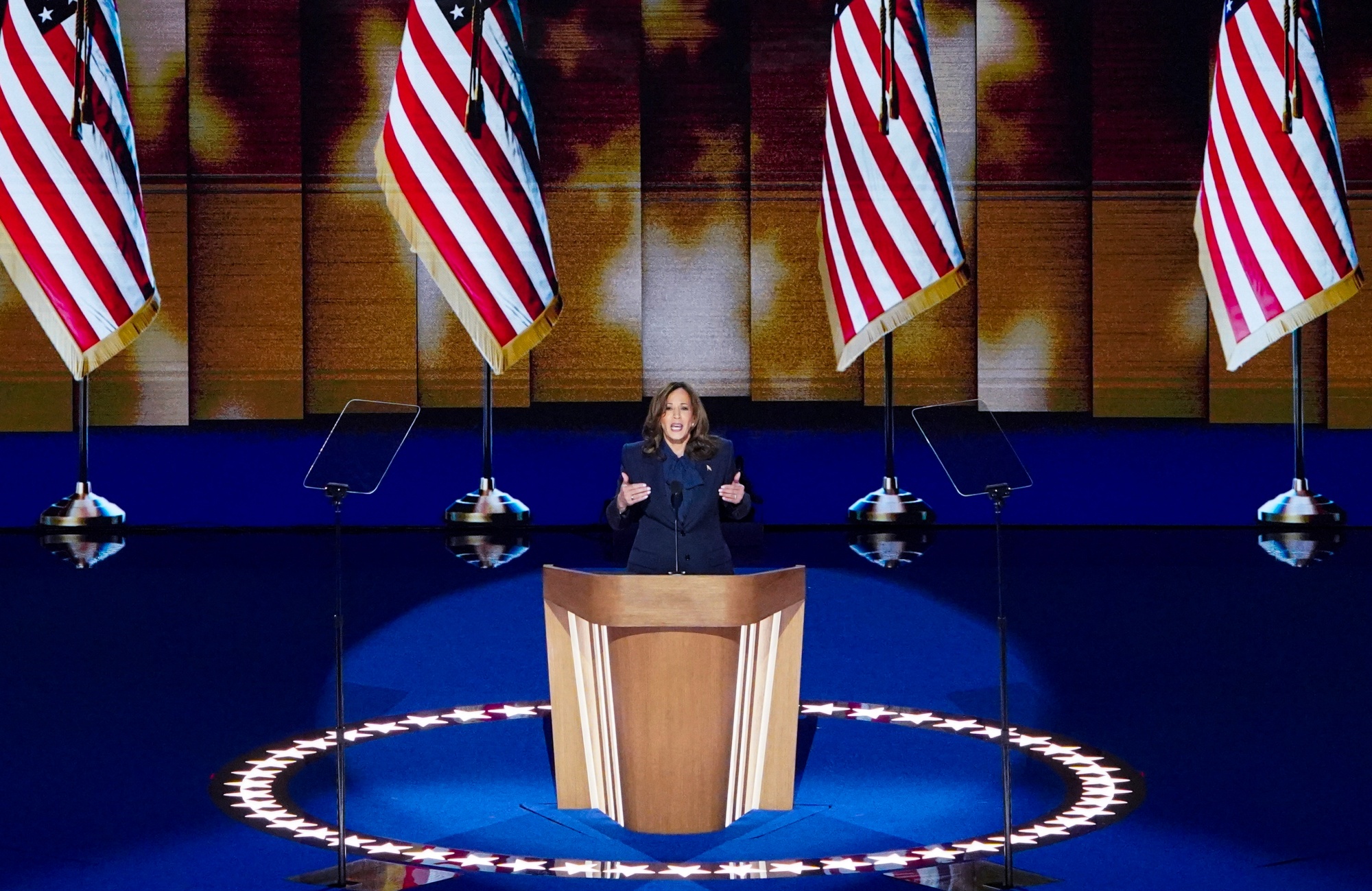 但哈里斯和她的搭档,明尼苏达州州长蒂姆·沃尔兹,决定在自由和机会的普遍价值观上进行竞选,特别是针对中产阶级,而不是与身份政治相关的狭隘宣传。他们承诺成为“所有美国人”的领导者,在一个爱国的、多元的民主国家中。