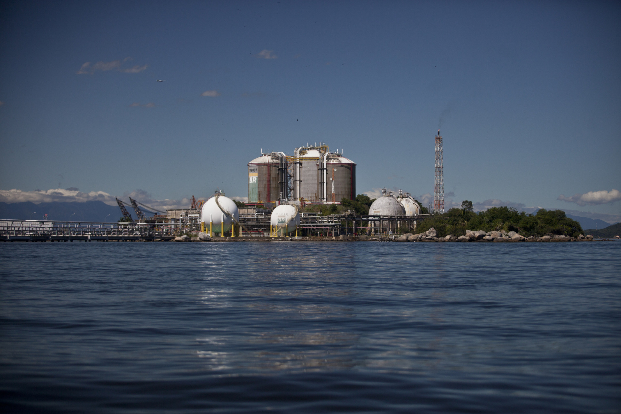 天然气储存罐位于巴西瓜纳巴拉湾的一座岛上。