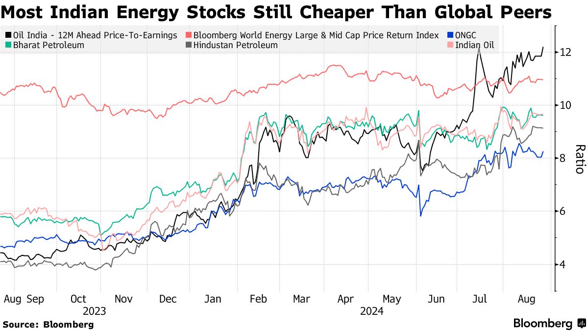 该行业由印度国有公司主导,因该国能源消费迅速增长而成为投资者的宠儿,预计到2030年,这个南亚国家将成为全球需求的主要驱动力。乐观情绪还源于政策激励,以促进国内石油和天然气生产,以及向股东增加现金支付。