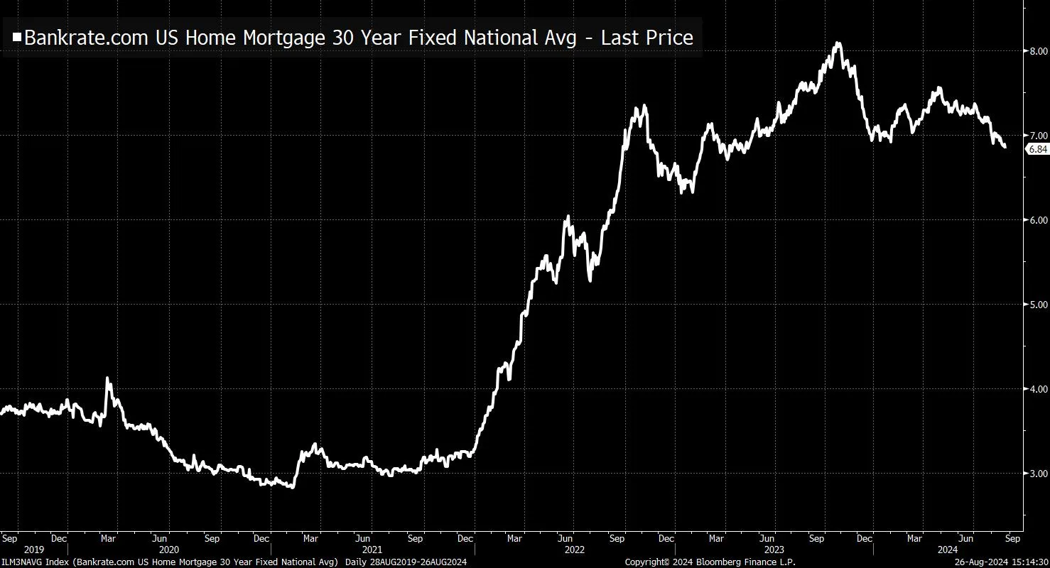 美联储几乎肯定将在九月份开始降息,这通常被视为对寻求借款的个人和企业的好消息。你知道的,潜在的购房者、房地产开发商、清洁能源公司(Matt Zeitlin在Heatmap News上对此有很好的分析),等等。当然,所有条件相同,是的,美联储降息确实有利于借款人。但,有几点需要注意。首先,借款成本已经大幅下降。2023年底,30年期抵押贷款的平均利率超过8%。今天低于7%。