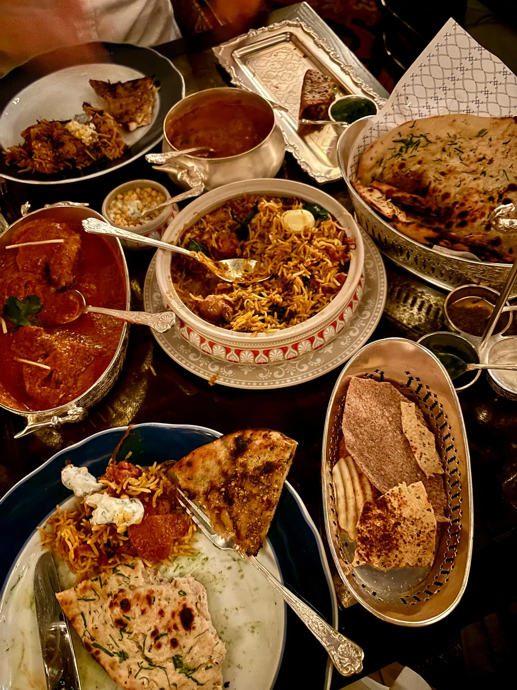 厨师Shanti Bhushan的菜单分为多个部分,包括前菜、小吃和烤肉,直到更大的菜品如香饭和matka和karahi,各种风格烹饪的咖喱。这是一份显著较长、略显复杂的菜单,部分菜肴翻译成英语,大多数则没有。(它可以使用一个词汇表,绝对受益于一个不急于上菜的服务员来提供解释。)