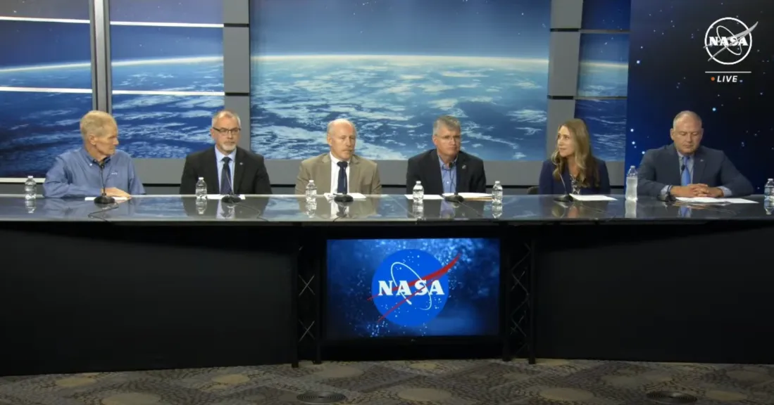 在这段来自NASA的视频中,管理员比尔·尼尔森(左)和其他官员在休斯顿的约翰逊航天中心回答了问题,随后决定明年将星际飞船二人组送回进行SpaceX任务。