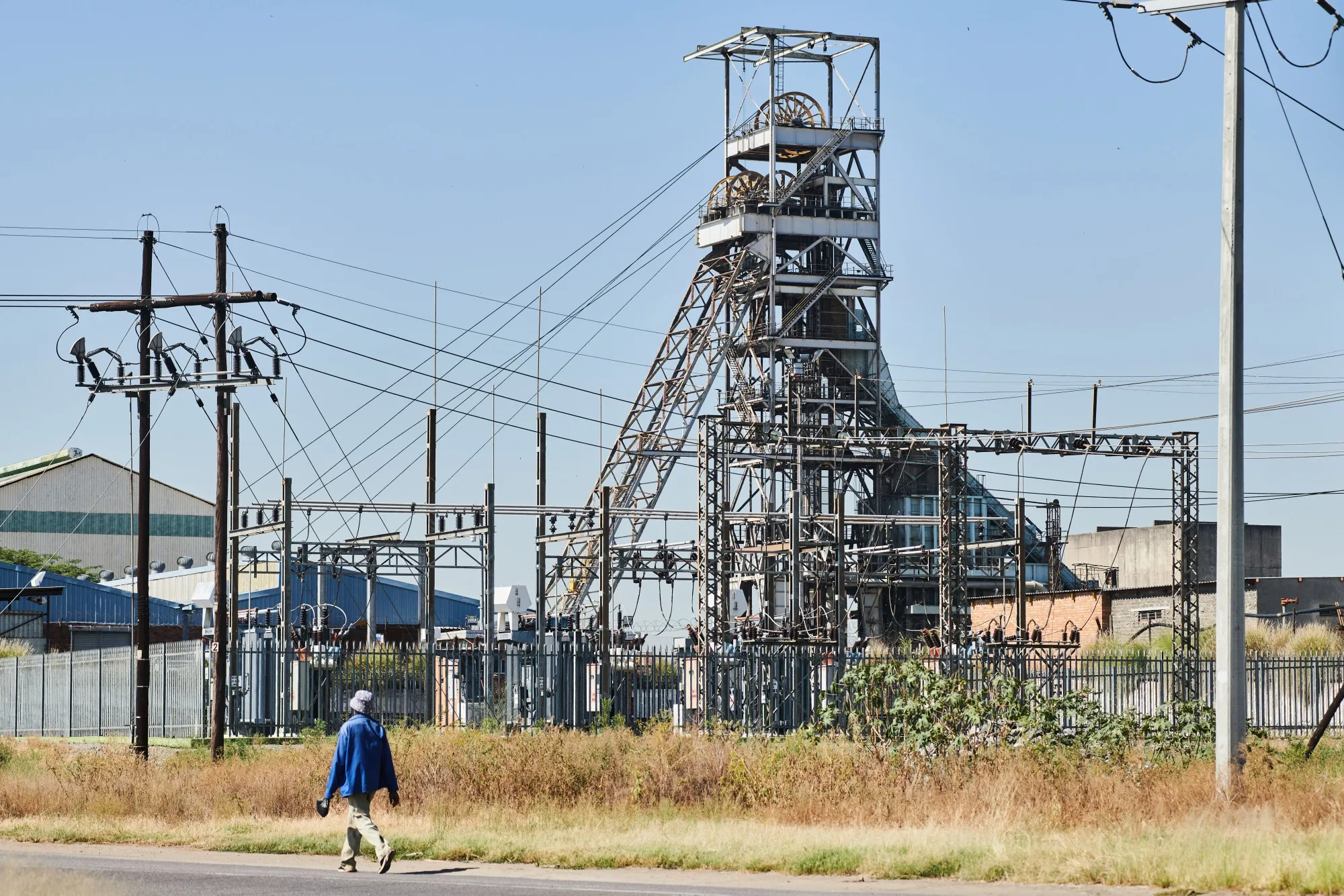 一名工人在南非鲁斯滕堡的Impala Platinum Holdings Ltd.(也称为Implats)1号矿井附近的道路上行走。