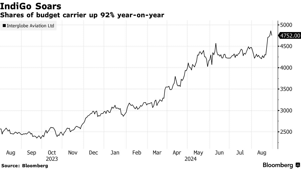 “IndiGo 仍然处于主导地位,拥有新的增长途径,”分析师 Prateek Kumar 和 Raghav Malik 在 Jefferies 的一份报告中写道。上周。