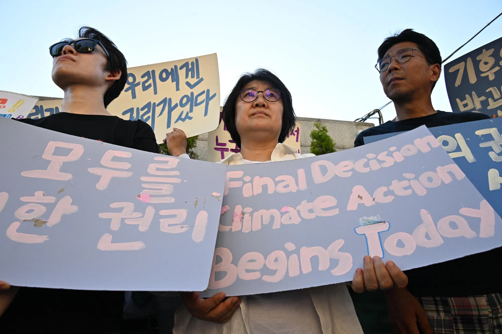摄影师:安东尼·华莱士/法新社/盖蒂图片社韩国在2030年至2050年间缺乏渐进的气候目标与该国宪法不符,法院在活动人士对政府减排计划提起诉讼后作出裁决。