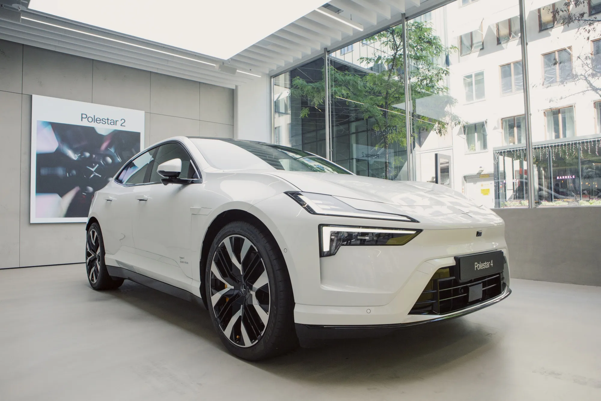 一辆Polestar 4在斯德哥尔摩的电动车展厅。