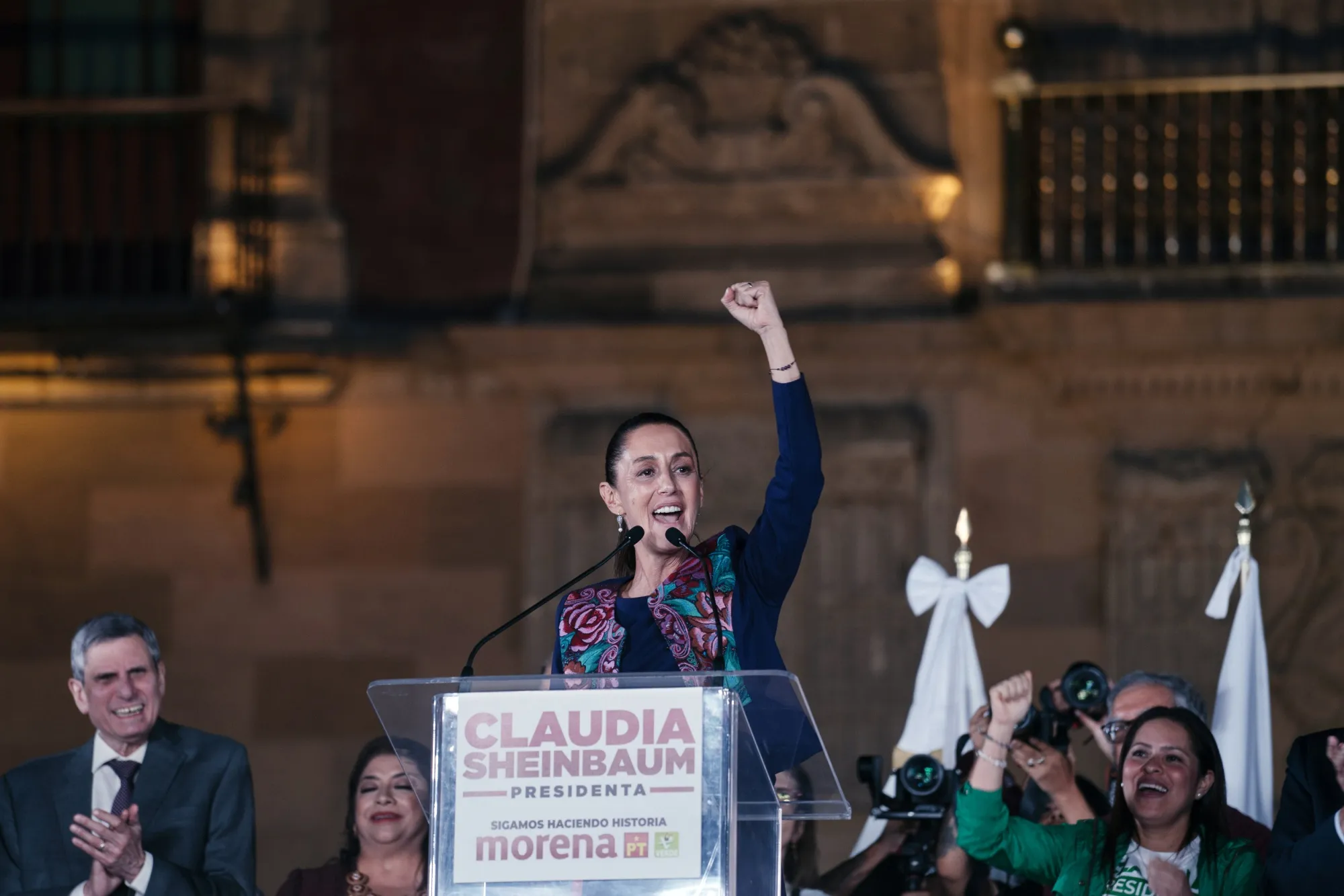 克劳迪娅·谢因鲍姆在墨西哥城的选举之夜集会上发言,时间是6月3日。
