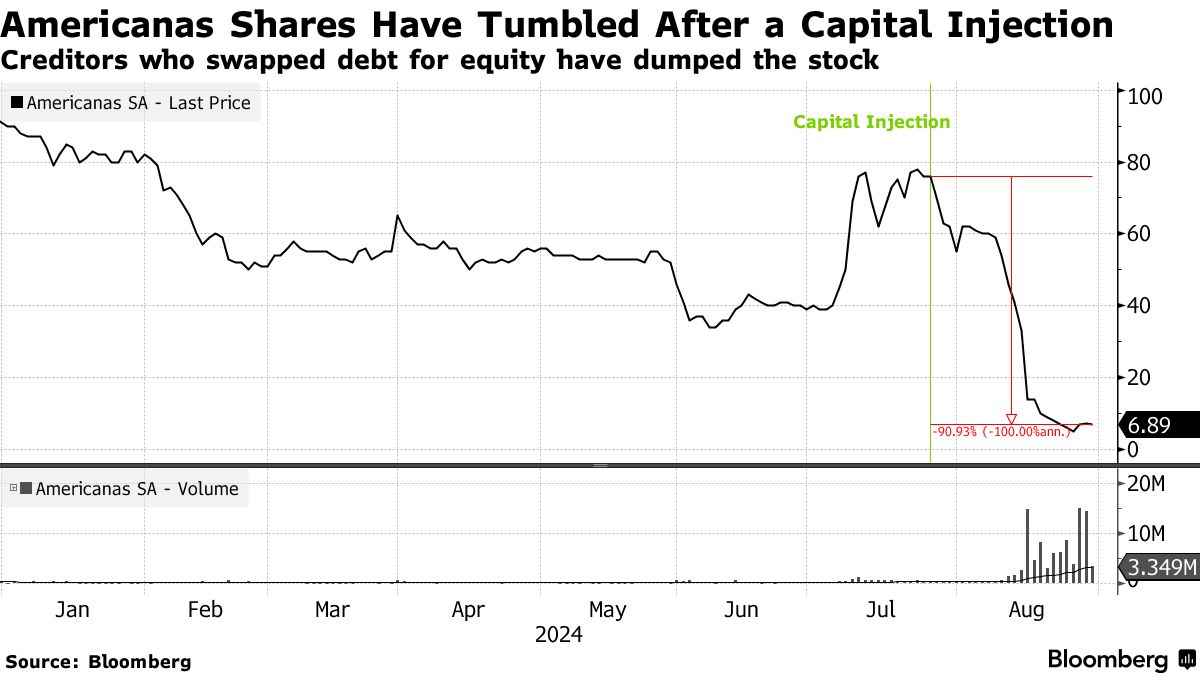 一旦这些债权人在8月15日被允许出售部分股份,他们就这样做了,进一步加剧了抛售。