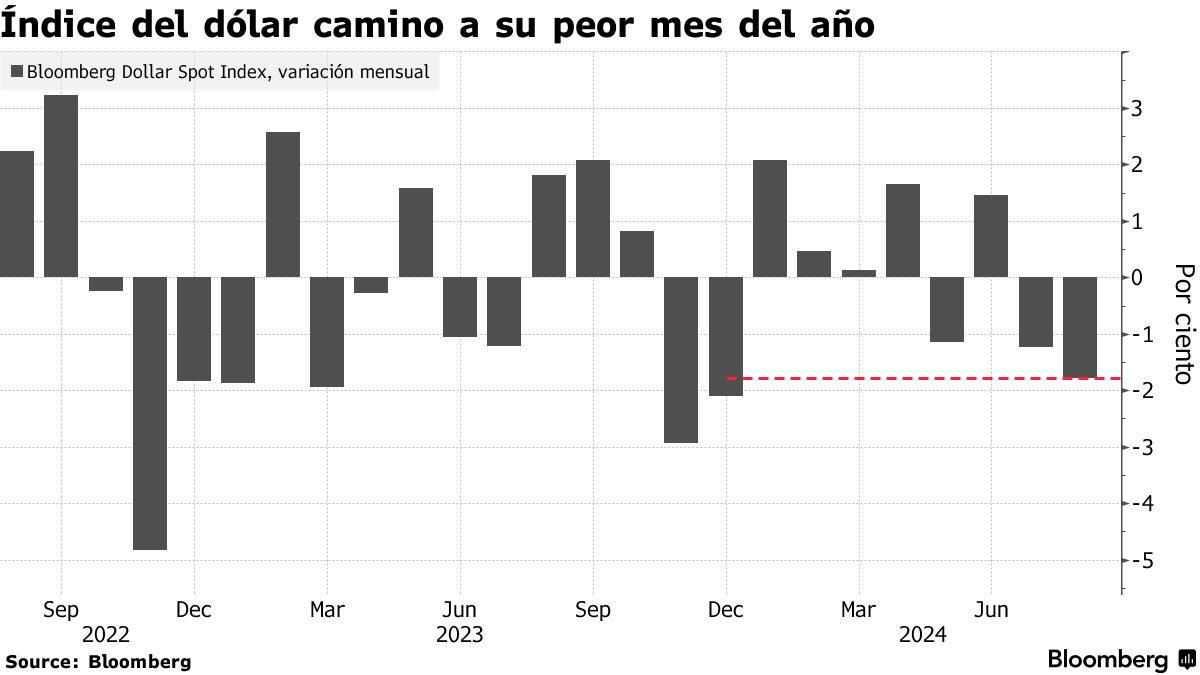 美元正朝着2024年最大月度亏损的方向发展 - 彭博社