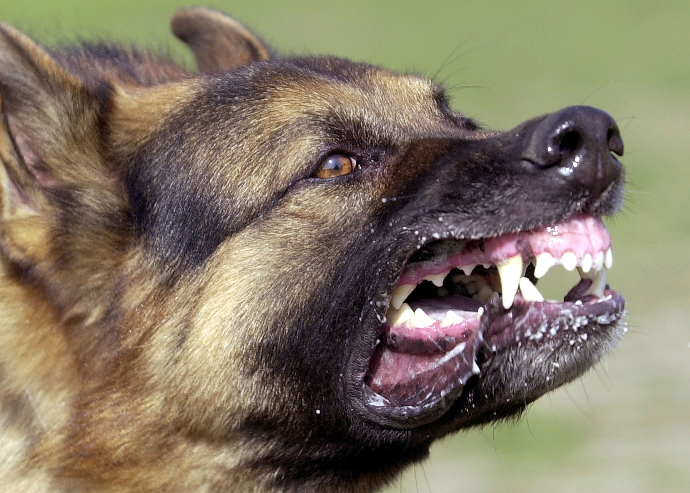 一只德国牧羊犬露出了牙齿。