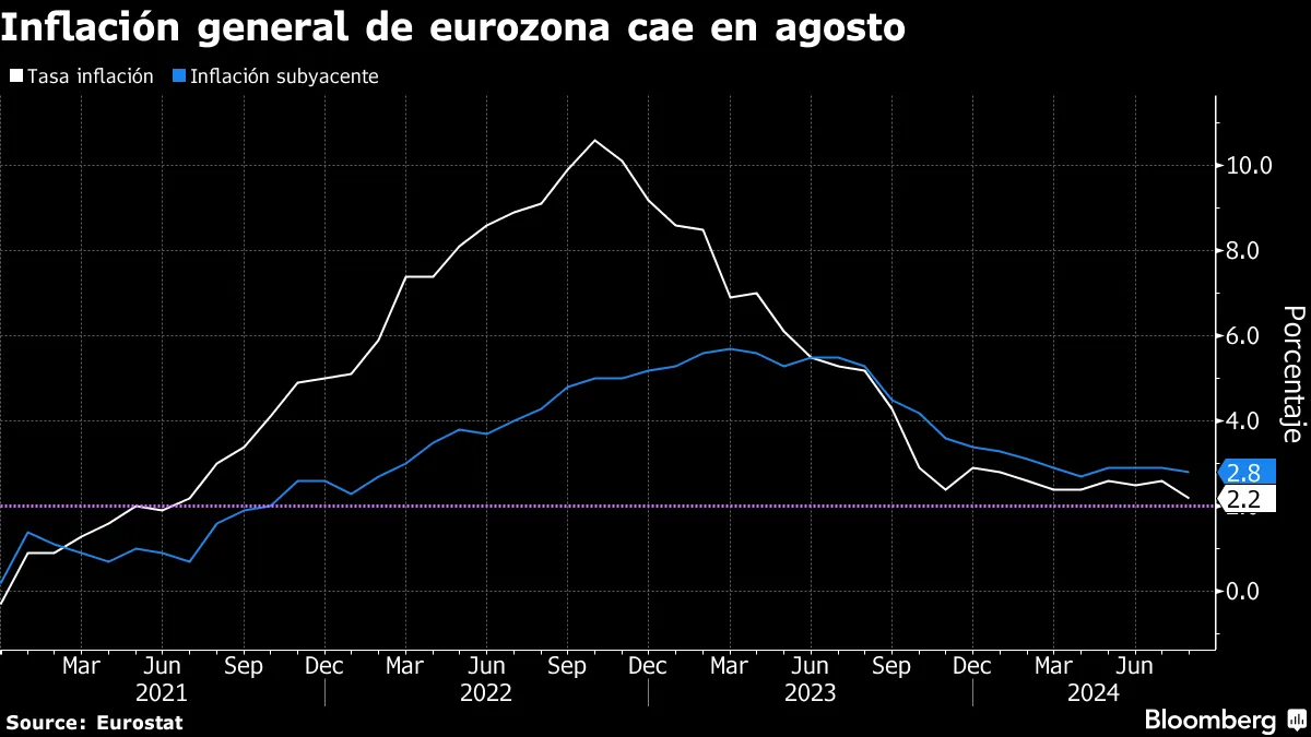 根据欧洲统计局周五的报告,8月份消费者价格同比上涨了2.2%。这一数字显著低于7月份的2.6%,并与彭博社调查中分析师的中位数预期相符。