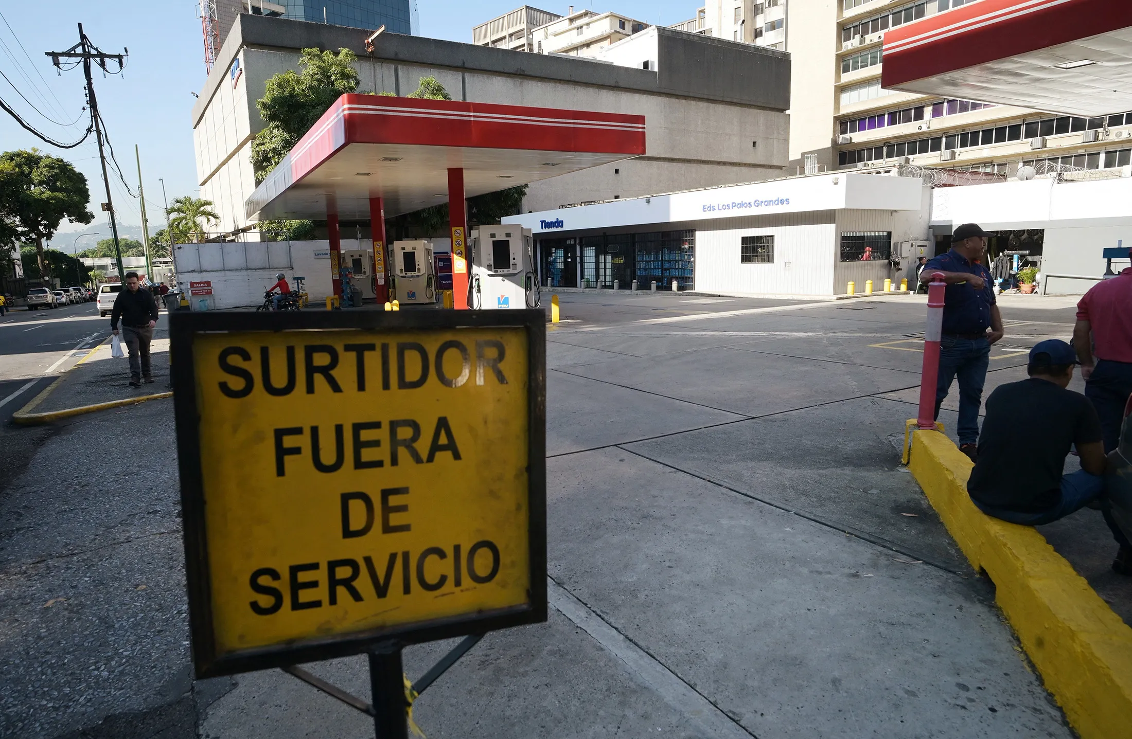 在加拉加斯停电后,汽油站的停用标志。摄影师:胡安·巴雷托/法新社/盖蒂图片社委内瑞拉的电力供应在周五早上经历了12小时的停电后正在恢复,尼古拉斯·马杜罗总统在国家电视台上表示。