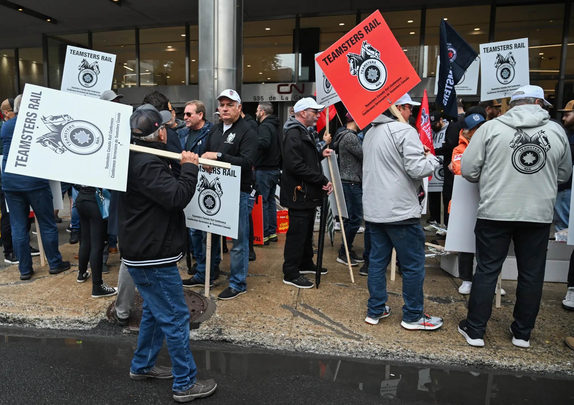 铁路工人和支持者在8月22日加拿大国家铁路公司总部前罢工。