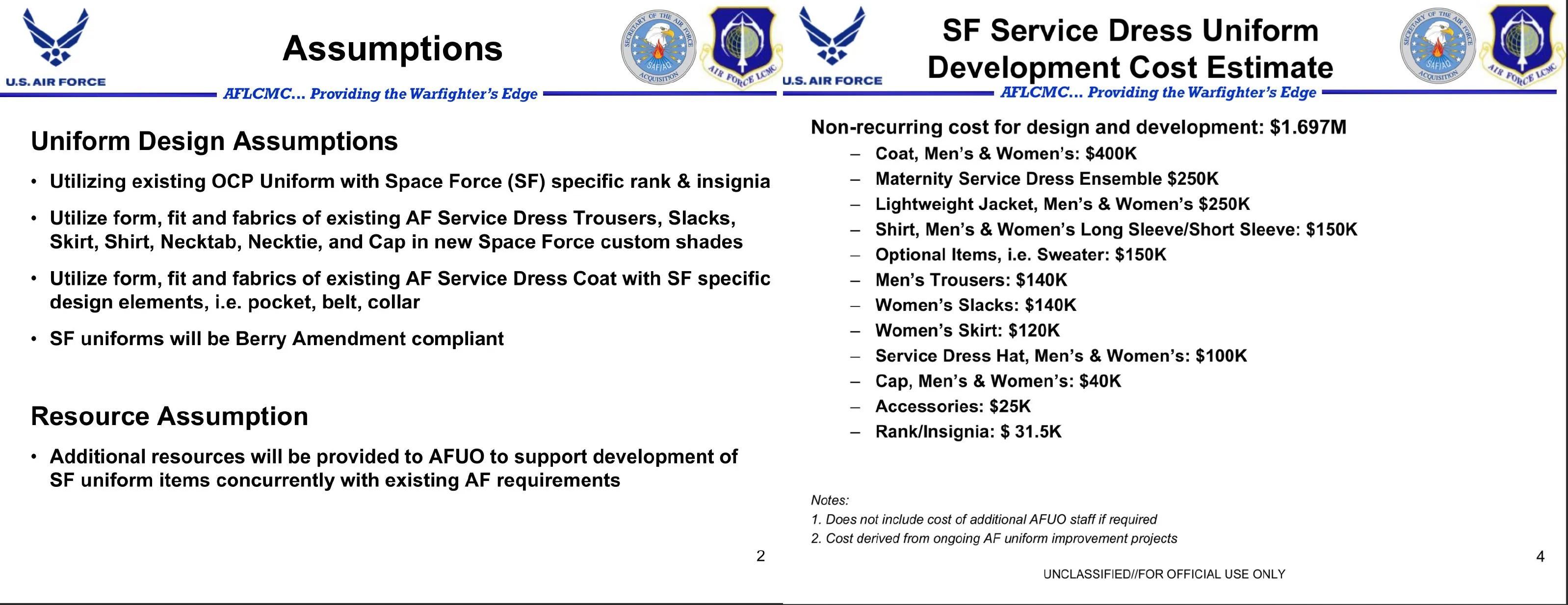 与此同时,我从 缓存 中提取了一些宝贵的信息。根据空军在第二次搜索后找到的PowerPoint幻灯片和电子邮件,开发新的太空军礼服的费用相当昂贵:大约170万美元。