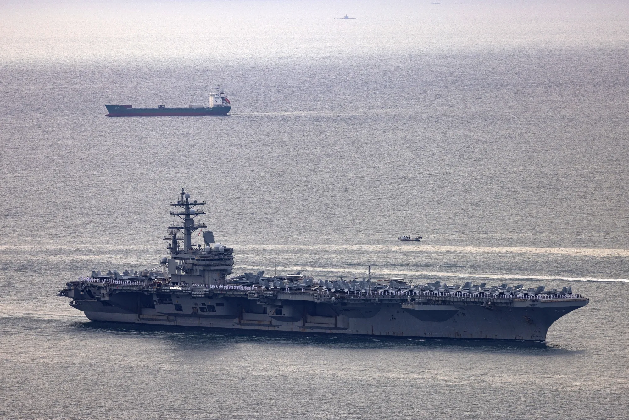 美国海军第七舰队的一部分,航母“罗纳德·里根号”,展示了美国在太平洋的实力。