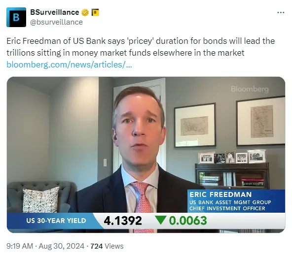 我们之前在 监测中谈到过这一点,分析师预测随着美联储降息,资金将开始从现金转向特别是长期债券。这个想法是,投资者希望锁定更长时间的收益,而不是接受越来越低的利率。