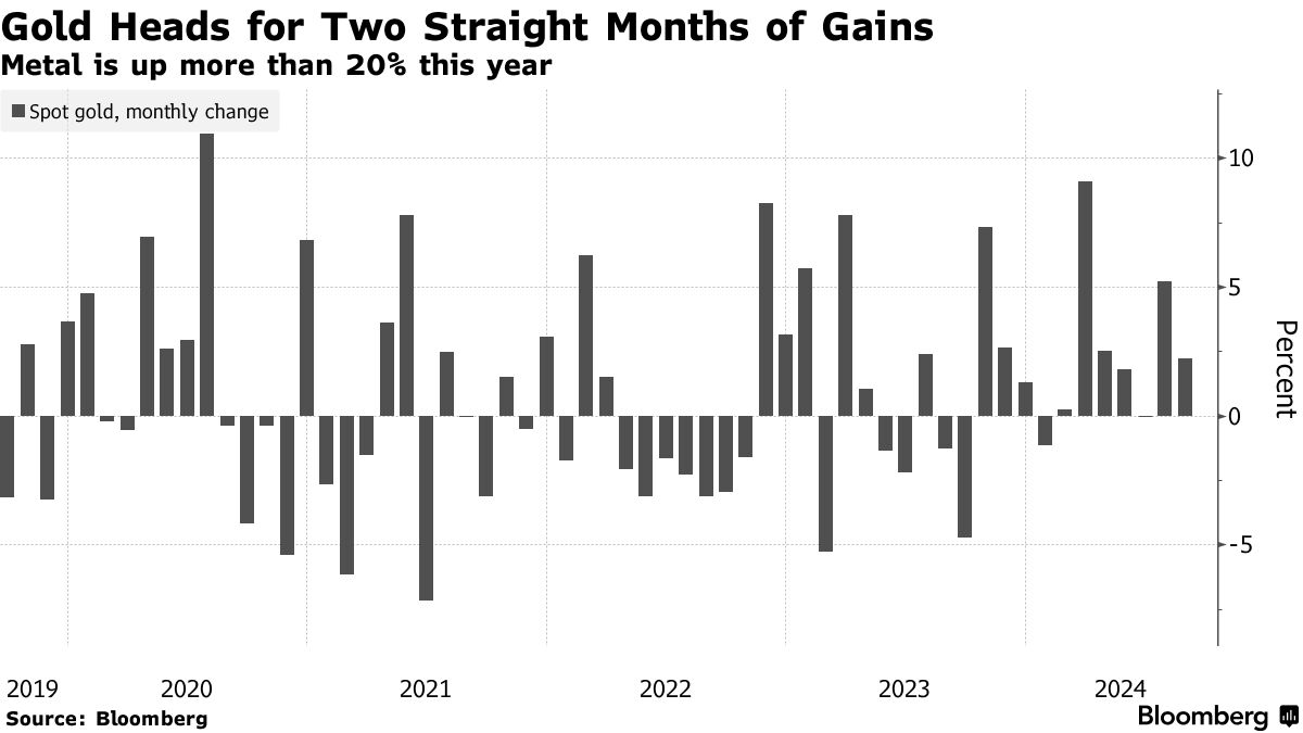 尽管如此,黄金仍有望实现超过2%的月度涨幅,此前七月上涨了5.2%。这种贵金属今年已上涨超过20%,其近期的上涨主要与市场对美国中央银行将很快开始从超过二十年的高位降息以帮助经济的乐观情绪有关。较低的借贷成本有助于提升对不产生利息的黄金的替代资产需求。