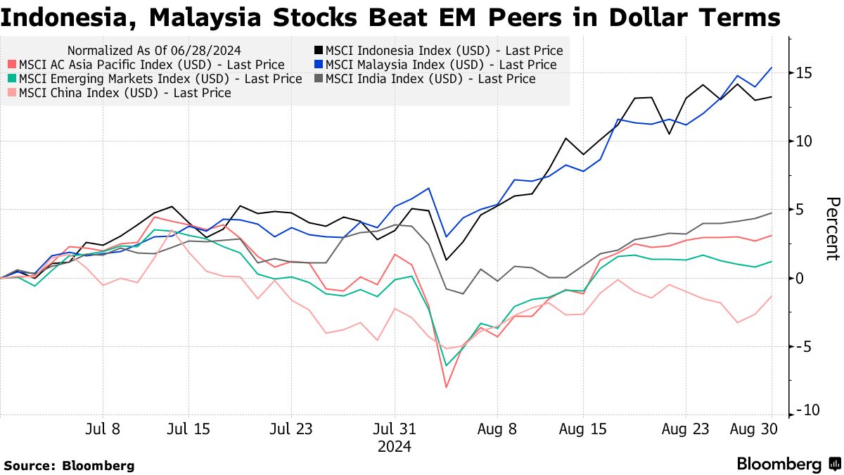 根据彭博社最新的数据,8月份,印度尼西亚、马来西亚和菲律宾是亚洲唯一在股票上实现净海外流入的国家。