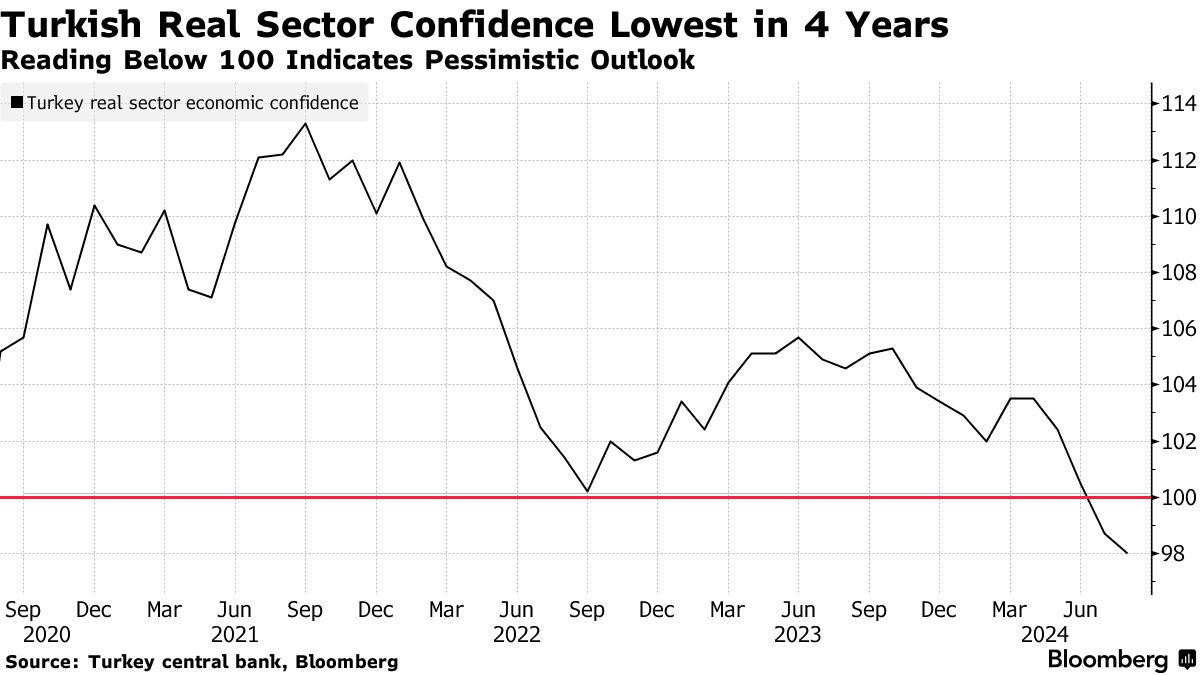 根据彭博经济学,土耳其2024年和2025年的年增长预计分别为3.2%和3.4%。这与新冠疫情前十年超过5%的平均水平相比。熟悉该计划的人士上周表示,土耳其当局预计将下调今年和明年的官方增长预测。