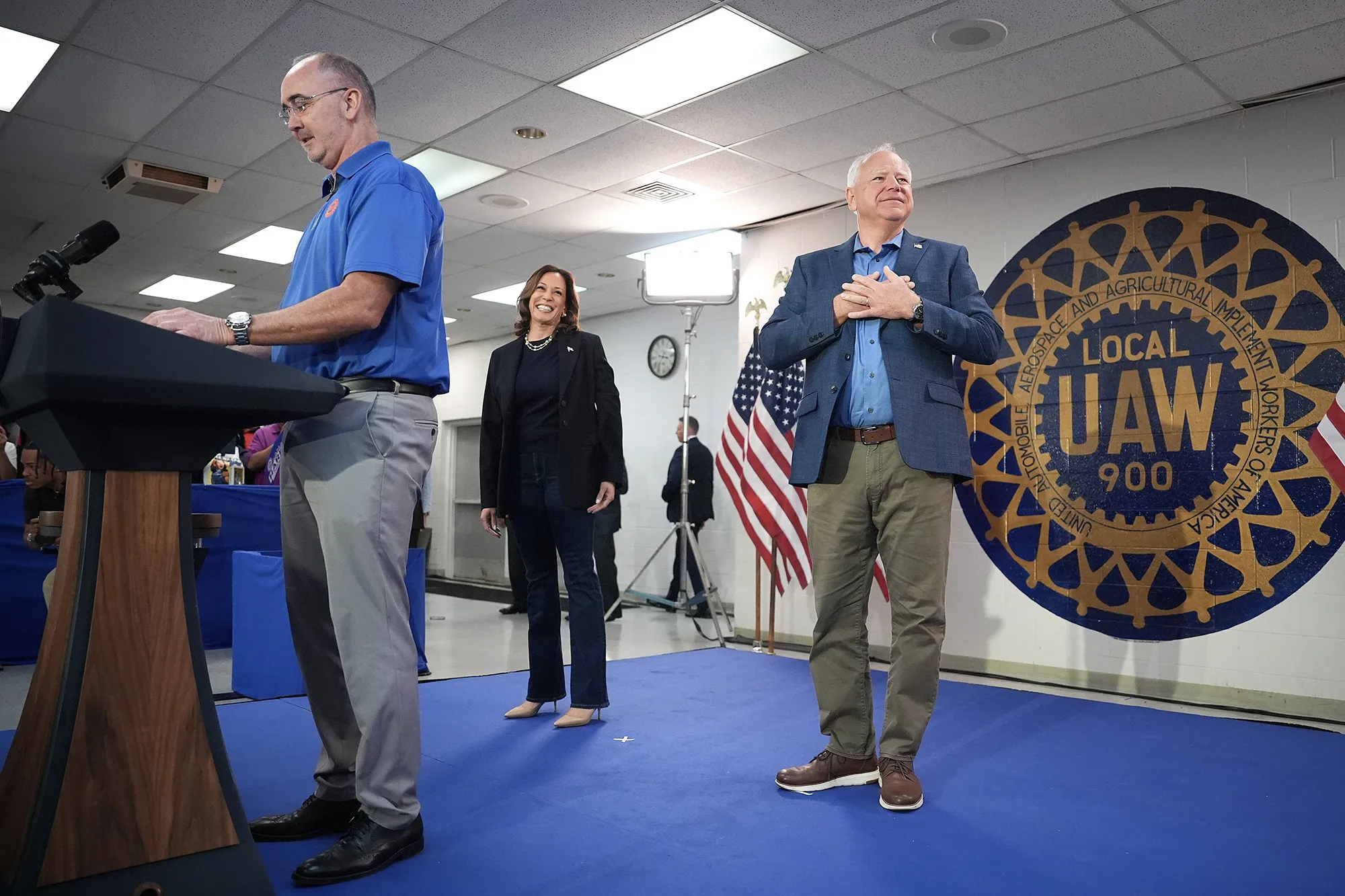 就她而言,哈里斯选择了一位在工会中拥有强大支持的副手蒂姆·沃尔兹,优先选择了明尼苏达州州长,而不是另一位候选人,亚利桑那州的参议员马克·凯利,后者在工会中受到了一些人的反对。
