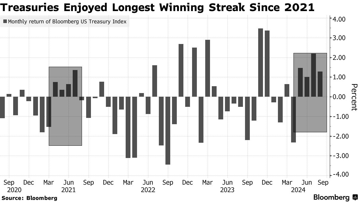 投资者可能需要为这次的风暴天气做好准备,面临的不确定性包括一份关键的美国就业报告,这被视为美联储未来降息幅度和频率的关键。接近历史高点的股票和享受三年来最长月度连胜的国债连胜看起来对数据冲击或来自紧张的美国总统竞选的意外事件非常脆弱。