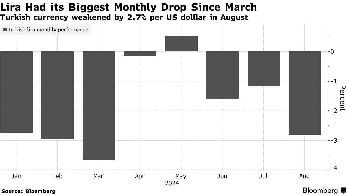 这些措施是在对外币需求增加导致里拉在八月份下跌幅度达到五个月以来最大之后出台的。根据匿名交易员的说法,国有银行已增加外汇销售以满足更高的需求,八月份至少售出100亿美元,交易员引用了机构政策。