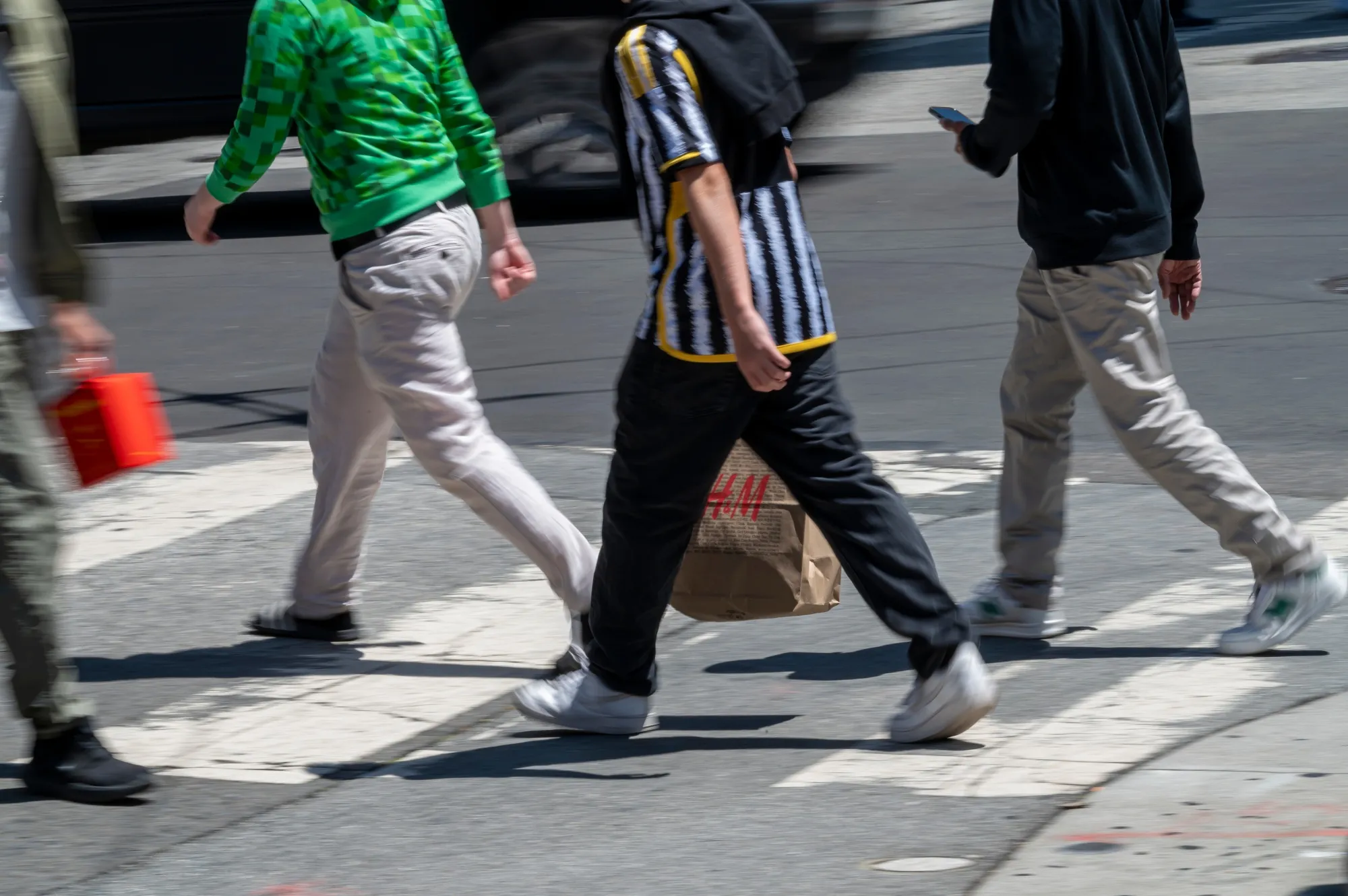 一位顾客提着H&M的购物袋。摄影师:David Paul Morris/BloombergGaly从棉花植物中提取细胞,将其添加到一个大桶中,并给它们喂糖。在它们充分繁殖后,Galy的技术人员利用他们对植物的遗传理解——这是经过数十年的研究发展而来的——来激活某些基因并关闭其他基因。结果是细胞转变并延伸成棉纤维。
