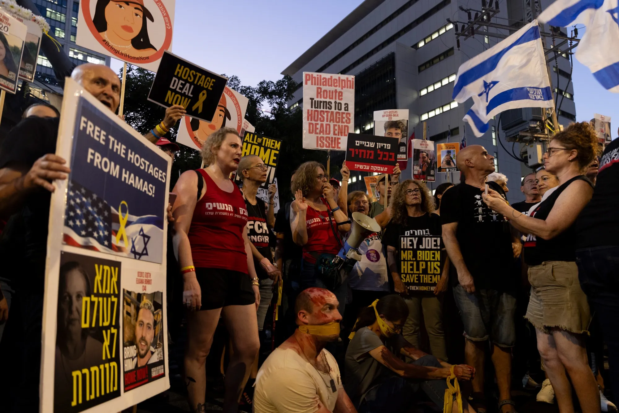 示威者呼吁政府在与伊朗支持的哈马斯的停火谈判中让步,以便达成协议,带回大约100名剩余的被绑架者,并暂停这场持续了近11个月的战争。