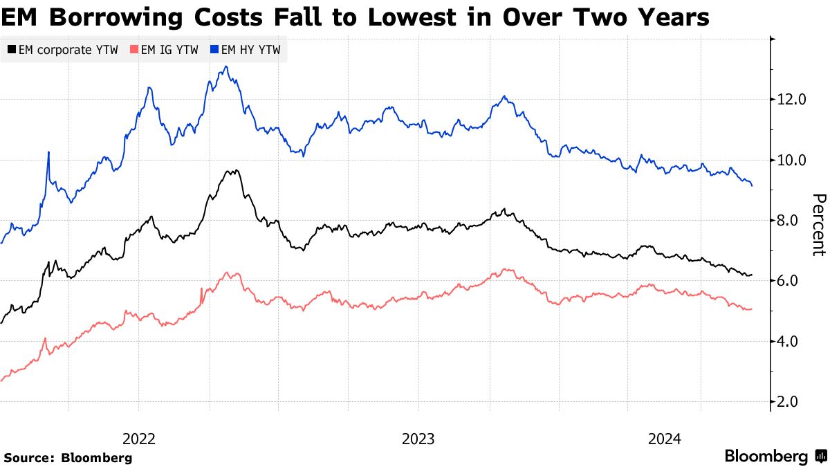 发展中国家的借贷成本正在下降,因为美联储将在本月晚些时候开始其货币宽松周期。在其他新兴市场,印度尼西亚正在出售约7.5亿欧元(8.28亿美元)的票据,期限到2032年。