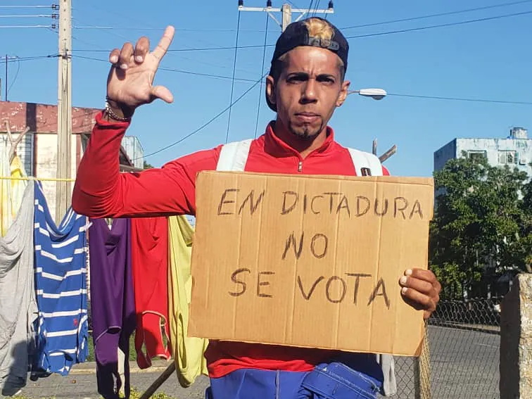 瓦尔德斯在离开古巴之前,手持一块写着“在独裁政权下你不能投票”的标志。版权所有:耶兰迪·瓦尔德斯瓦尔德斯在出狱后的几个月里——在他登上筏子前往墨西哥之前——抗议古巴政权。他手持手机,记录他认为政府对人民的虐待。当风暴袭击岛屿时,他向佛罗里达的古巴裔美国视频博主发送视频,展示不充分的灾后响应。当官员来到他家询问时,他将访问的视频发送给同样的反哈瓦那媒体。瓦尔德斯表示,他已成为一名公民记者,致力于记录祖国的人权侵犯。