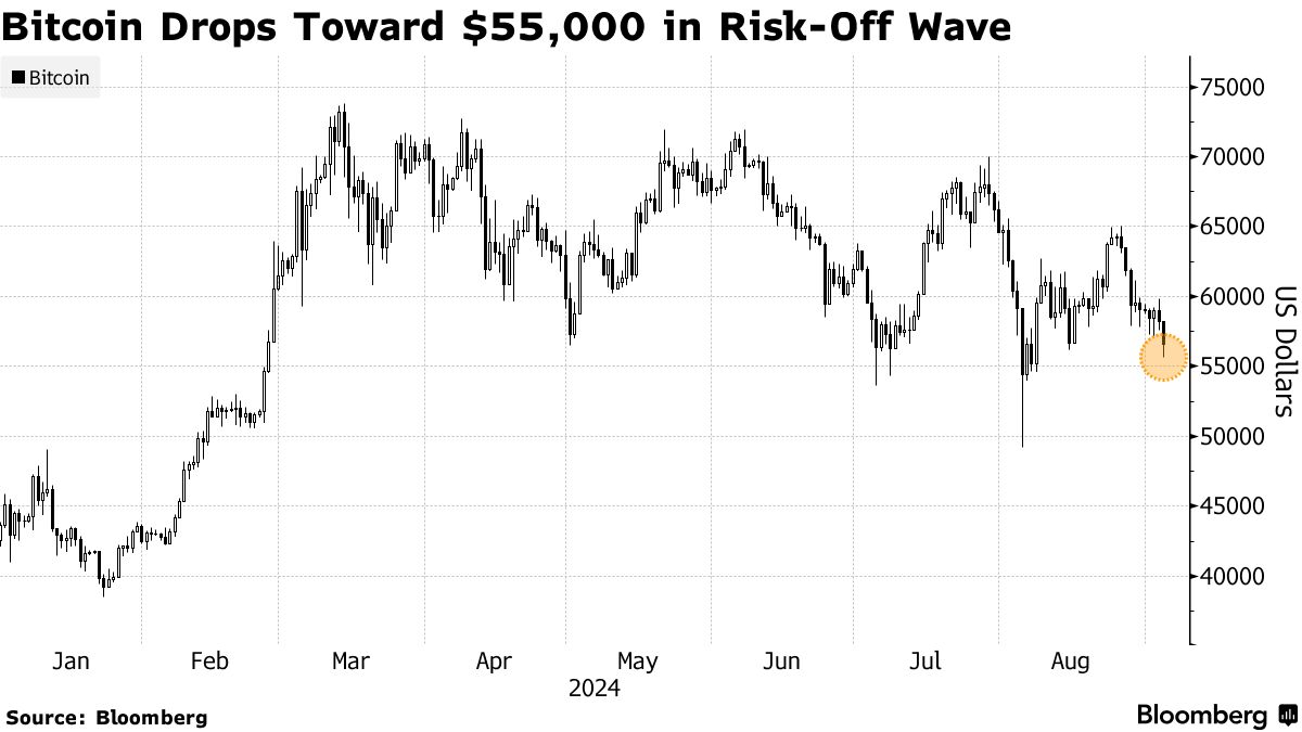美国和中国经济疲软的迹象让投资者感到不安,导致全球股票经历自8月5日暴跌以来最糟糕的时期。这种阴郁的情绪也蔓延到了加密货币市场,交易者们关注着定于周五发布的美国就业报告,以寻找是否有更深层次经济放缓的线索。