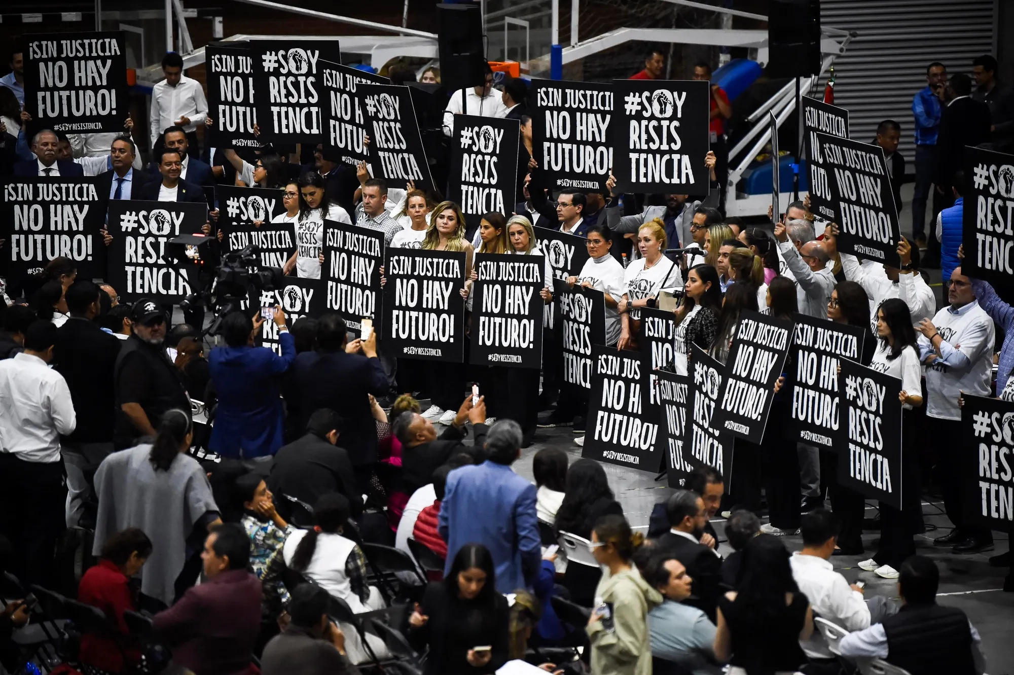 会议不得不在墨西哥城的一个体育中心举行,因为示威者 封锁了 立法机构的通道,以抗议该改革。当记者在早间新闻发布会上询问他关于场地变更时,AMLO为立法者的行动辩护,并批评法官参与罢工。