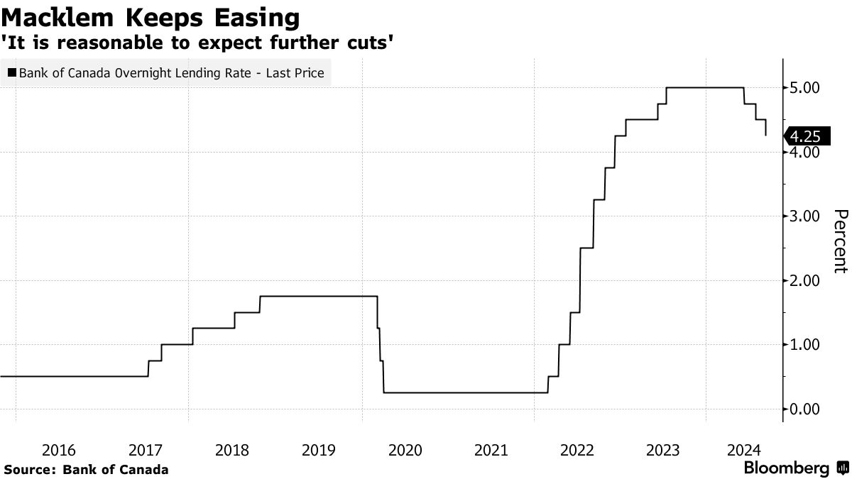 加拿大银行将利率下调至4.25%,预计未来将进一步放宽 - 彭博社