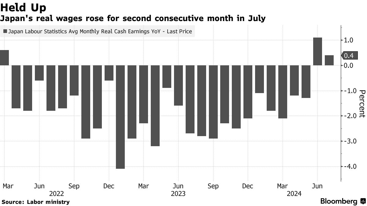 日本实际工资意外上升,令日本央行维持加息路径 - 彭博社