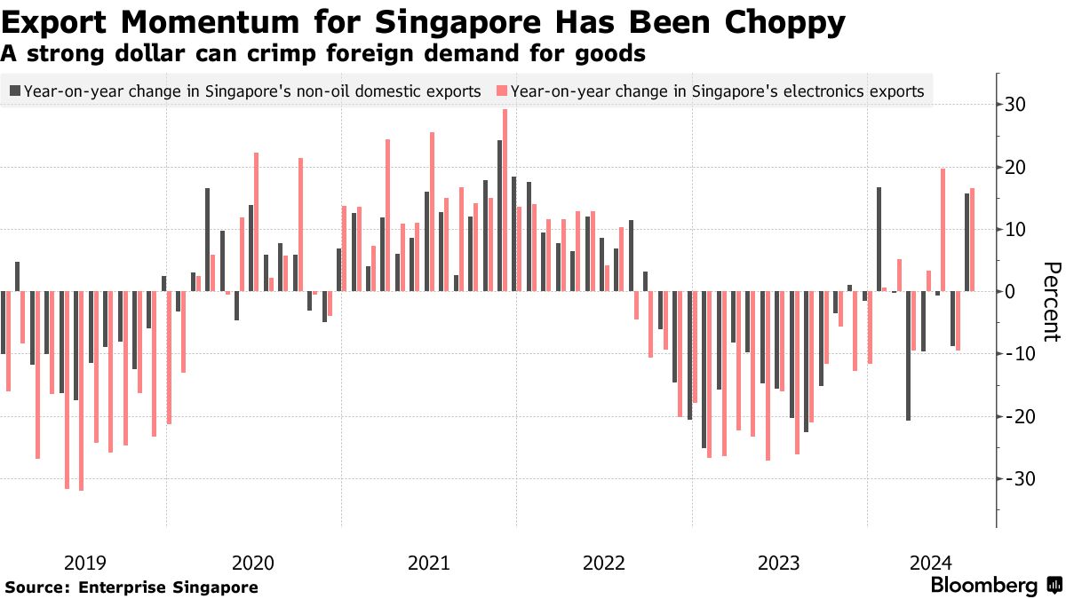 “新加坡元的强势是一种平衡行为,”新加坡商业联合会首席执行官郭炳顺说。虽然其强势抑制了通货膨胀,惠及经济,但当其过于强劲时,“可能会使我们在出口方面失去竞争力。”