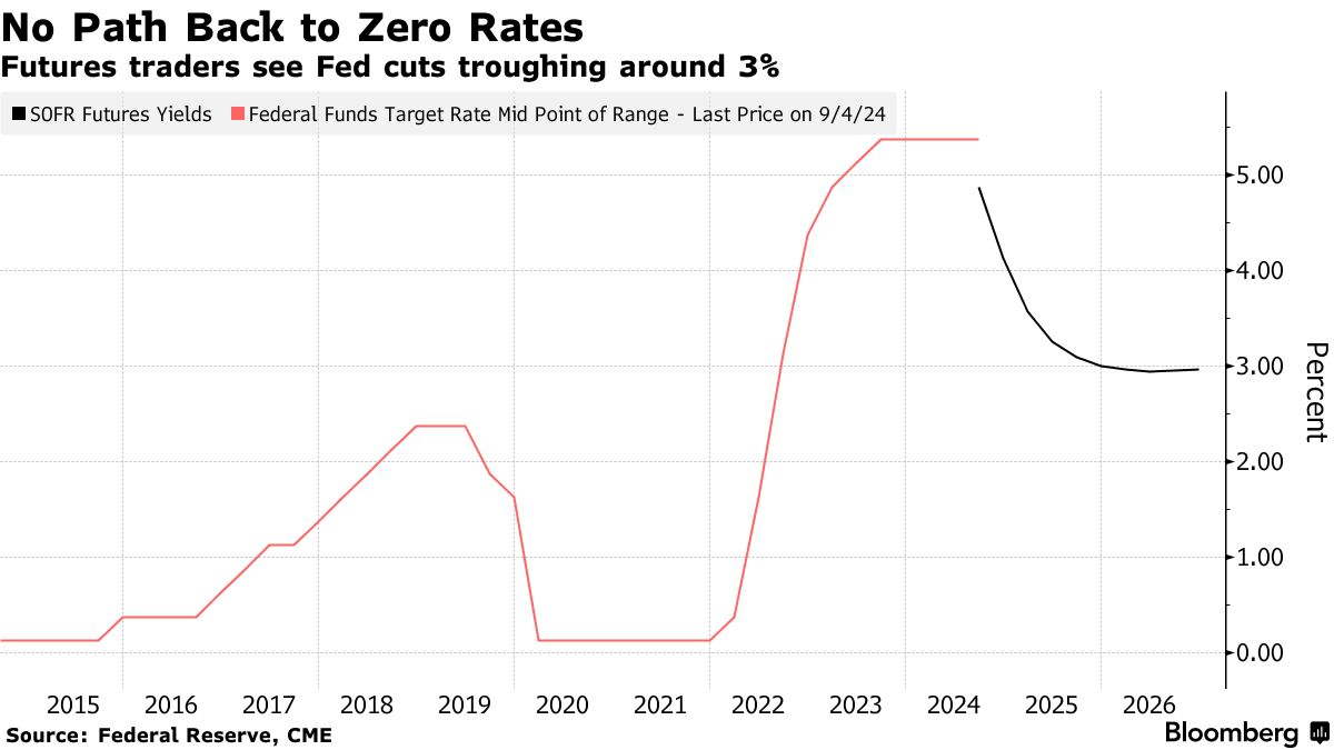 Marks的观点与市场对降息幅度的定价大致一致。期货交易员预计降息将在3%的区间停止。