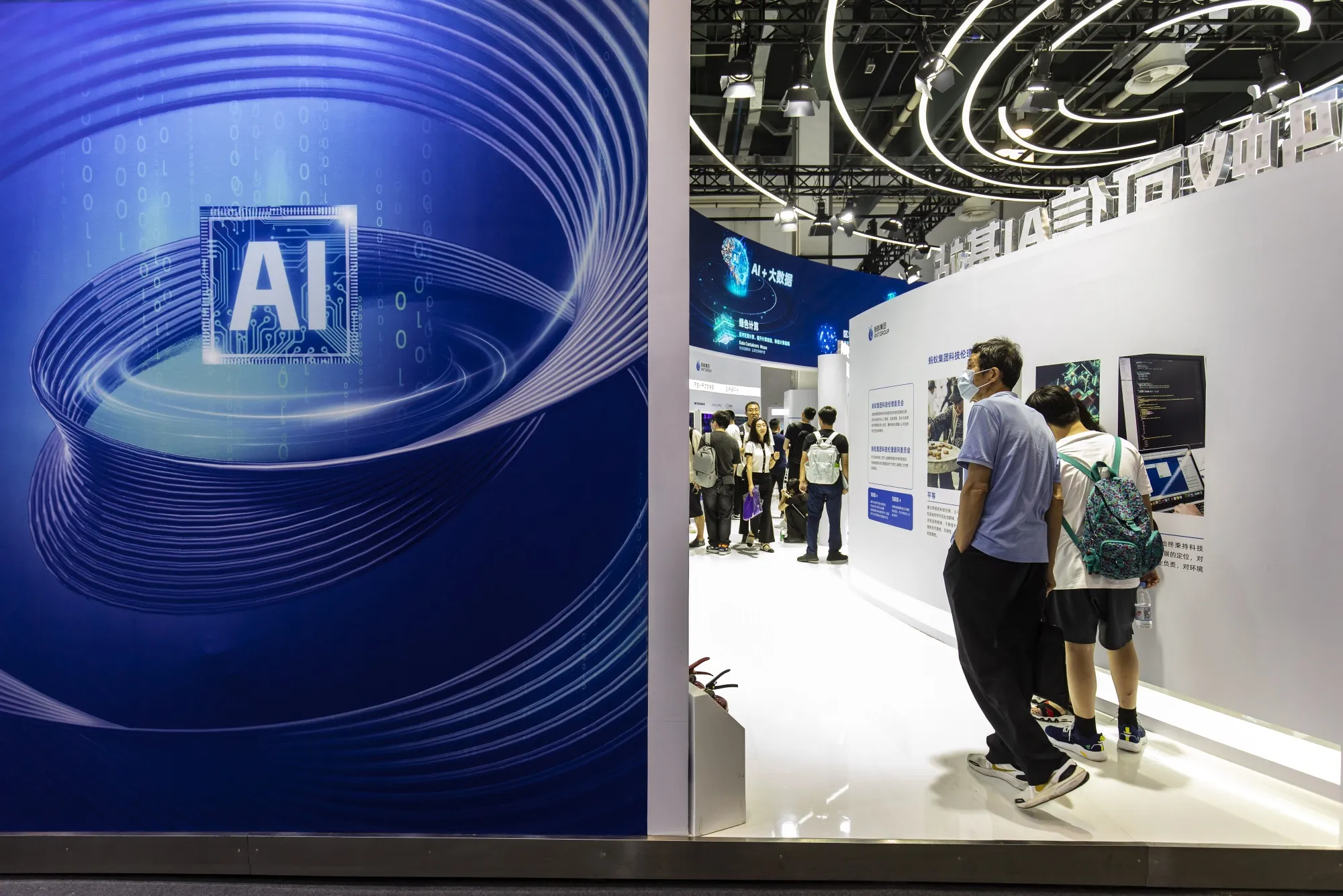 在上海世界人工智能大会(WAIC)上,参会者在蚂蚁集团展位。