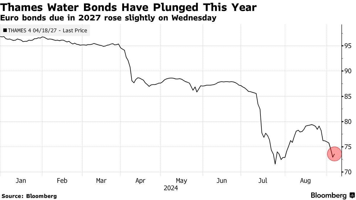 泰晤士水务2027年到期的债券在计划细节被报道后上涨,攀升至73.51便士。