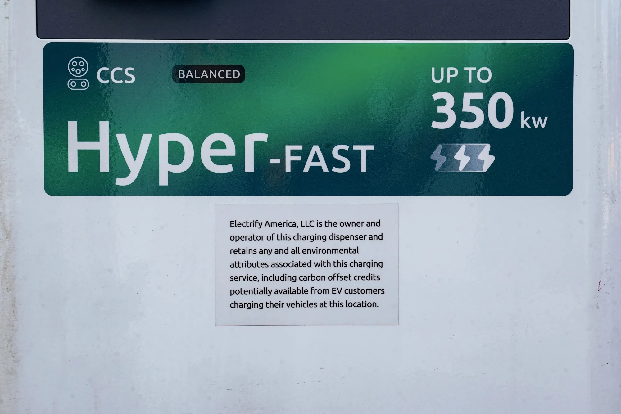 对于穿越怀俄明州的电动车司机来说,位于洛克斯普林斯的史密斯超市是一个绿洲。它就在I-80旁边,街对面有一家Petco,并且有六个插座承诺以350千瓦的速度充电。以这个速度,一辆特斯拉Model 3可以在上厕所和拿一根Snickers的时间内从空电充到满电。